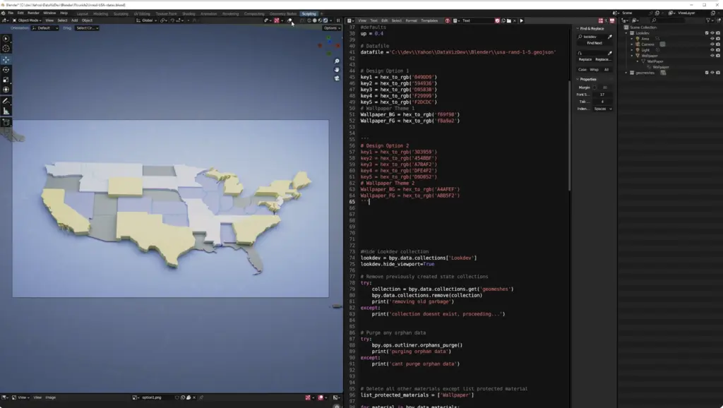Just like in a previous article, one can also read GeoJSONs in Blender and create, for example, the shapes of the USA states.