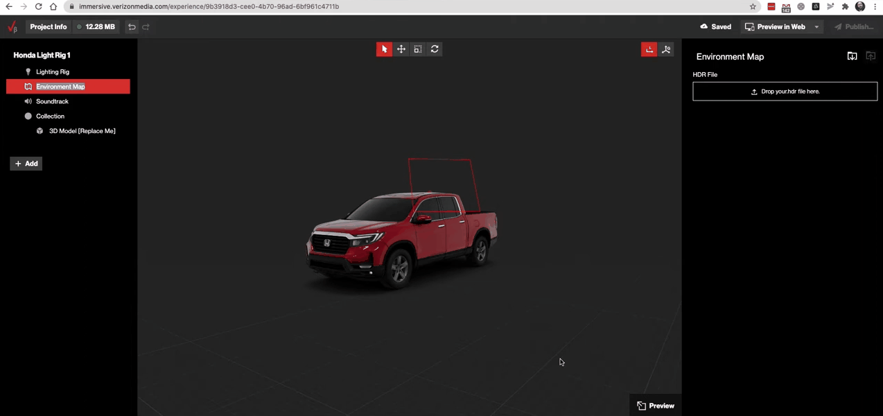 Once the model ingestion and lighting were covered, it was time to add features to the automotive AR experience. Little things that make the experience more visually rich, like how the model appears in the scene.